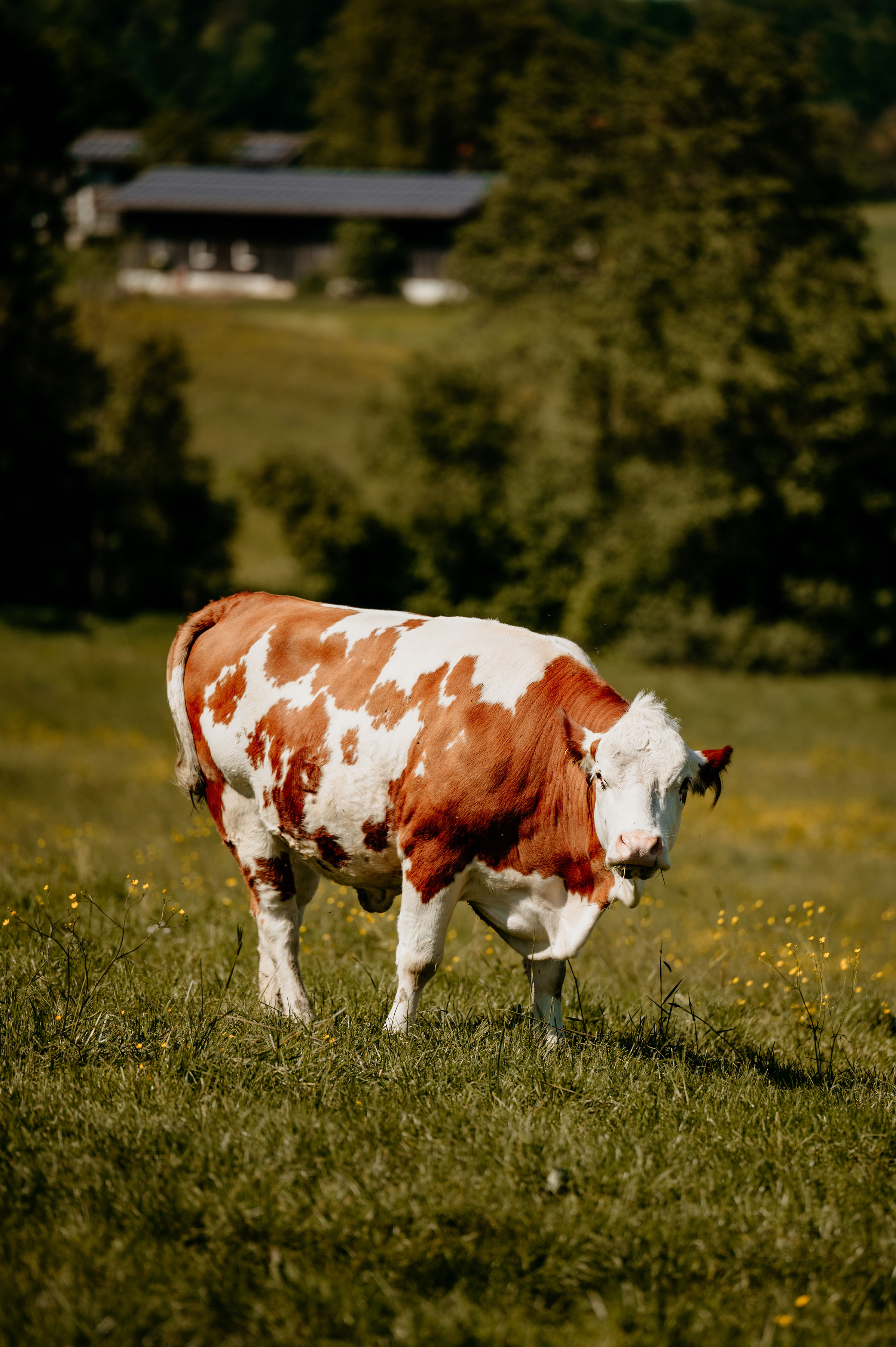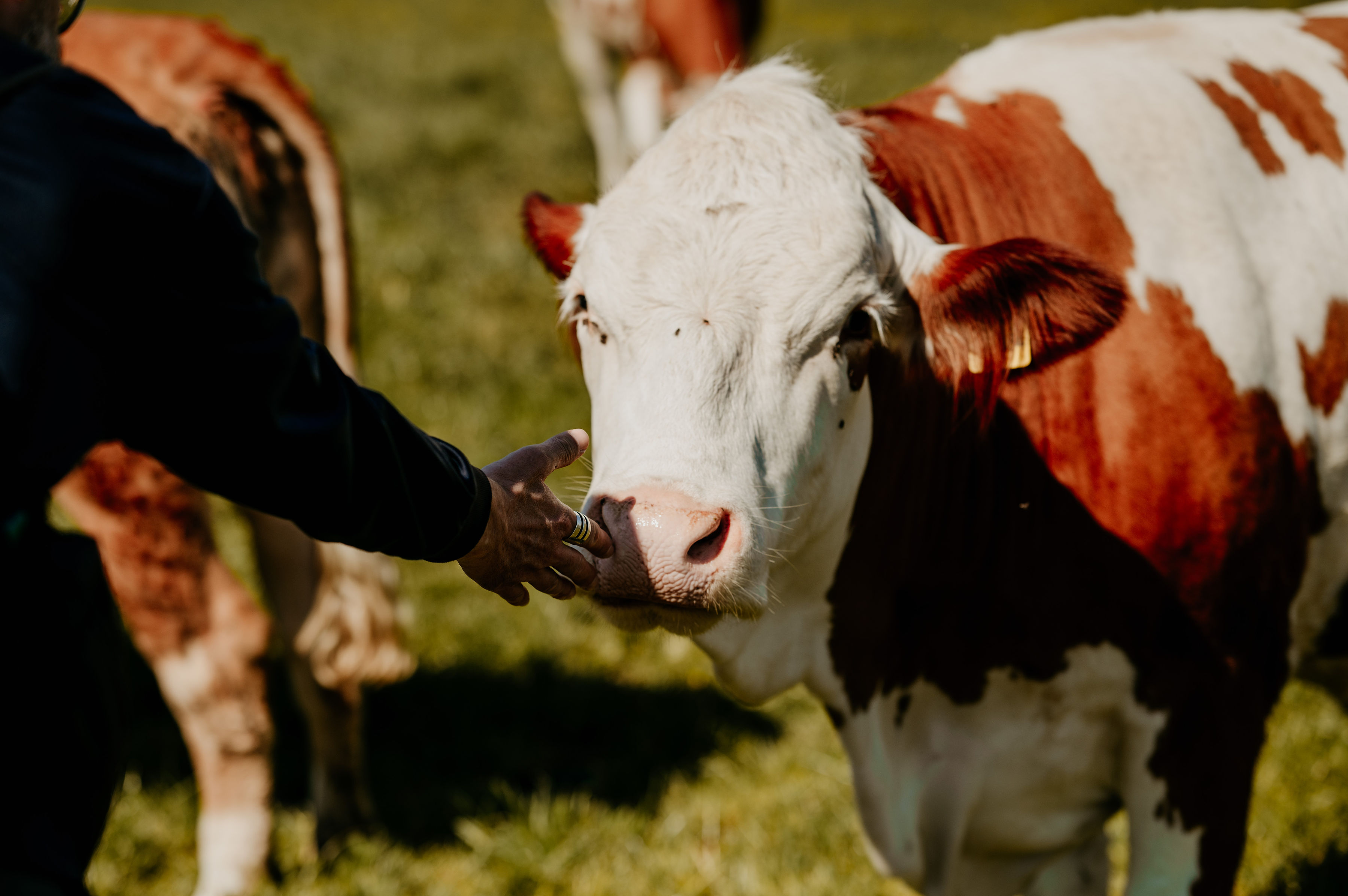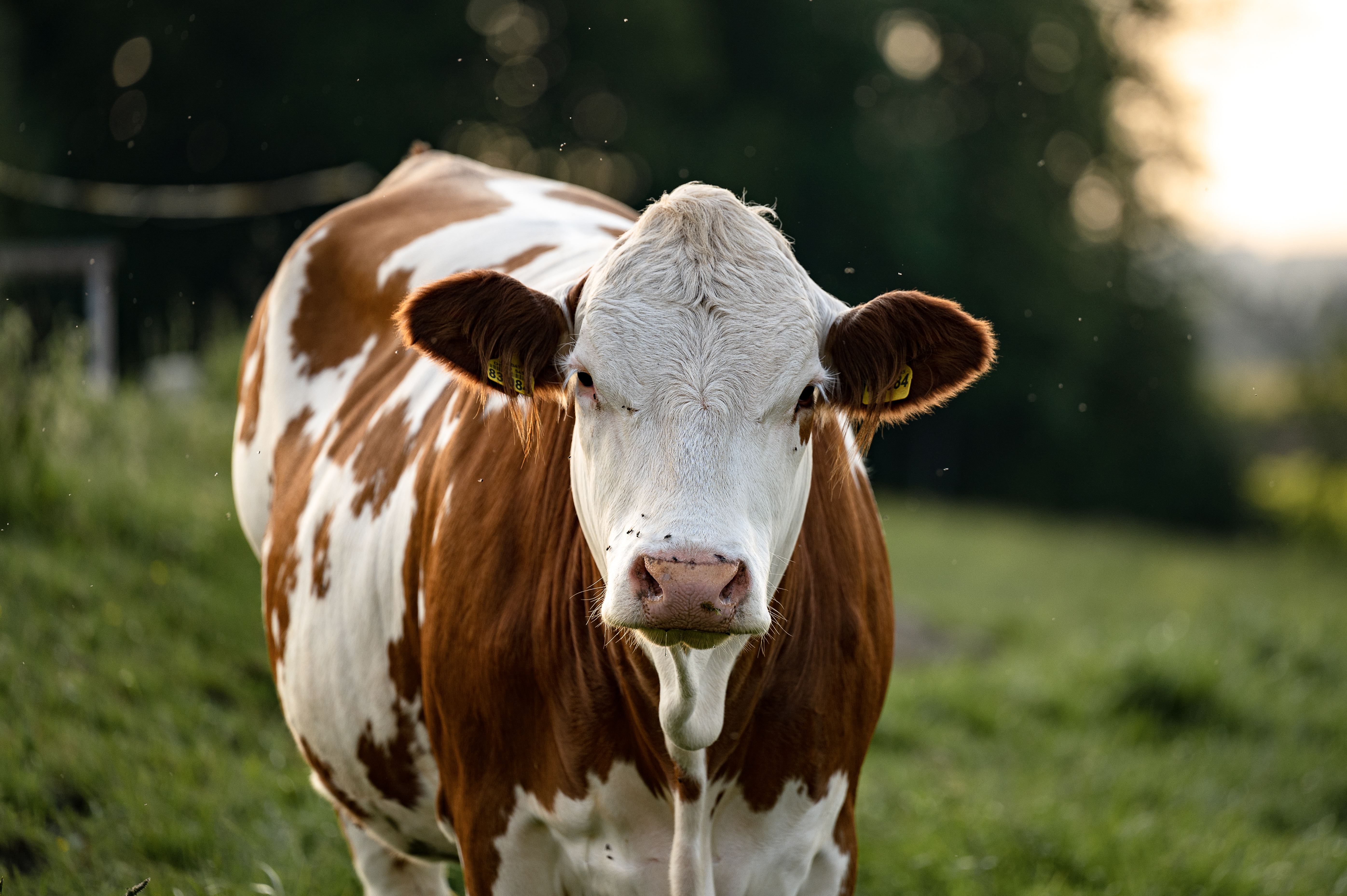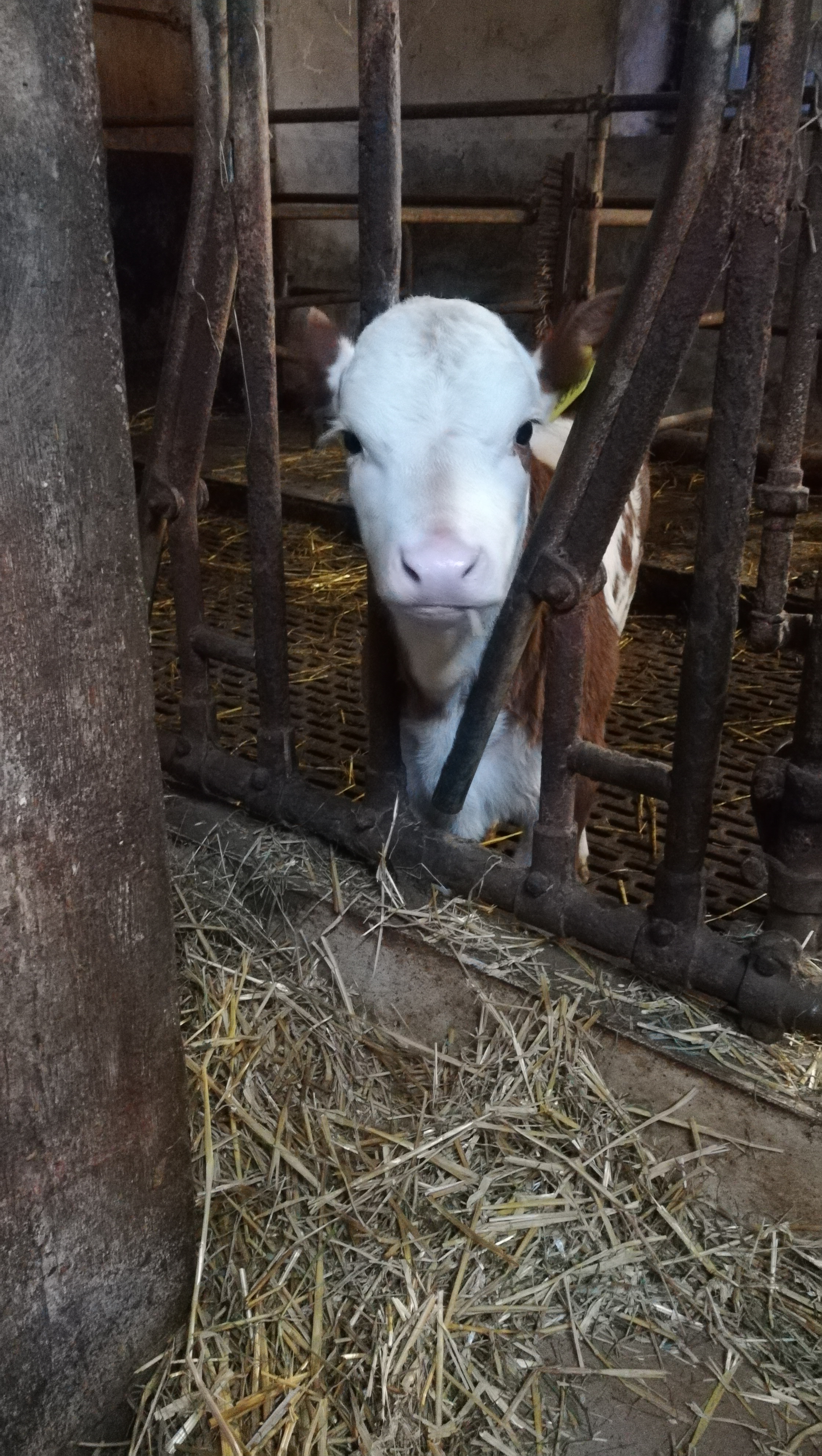 Biene wurde als kleines Kalb oft liebevoll “Hummel” genannt. Mit ihren dünnen Beinchen, dem gewaltigen Bäuchlein und ihrem über die Maßen plüschigen und abstehenden Fell hätte man ihr leicht eine Verwandtschaft zu eben jenen flauschigen Wildbienen abnehmen können. Lediglich ihre bedeutend abweichende Körpergröße ließ uns an dieser genetischen Verbindung zweifeln. Aufgrund der Tatsache, dass sie nie eine direkte Altersgenossin in der kleinen Kinderherde hatte, hat sie sich schon früh zu einer sehr eigenwilligen Persönlichkeit entwickelt. Lange war sie mit Abstand die Jüngste in der Gruppe und lernte, sich ihren eigenen Platz zu suchen, wenn es Stress gab. Triezten die Großen sie am Tage, durften sie sich am nächsten Morgen dafür über Kälberhäufchen in den Liegeboxen ärgern. Denn Biene war als Kalb sicher alles andere als “stubenrein”. Immer verdreckt von den Klauen bis zum Kopf spazierte der kleine Struwwelpeter etwas außerhalb der Gruppe über die Obstwiese. Im starken Kontrast zu ihrem Äußeren war sie dabei wie eine Disney-Prinzessin stets von kleinen Vögelchen umringt. Diese schienen im Frühjahr und Sommer gerne den Schatten unter Bienes prallem Bäuchlein zu nutzen. Vielleicht gab es aber auch noch andere Gründe dafür, weshalb sich die Vögel dermaßen zu ihr hingezogen fühlten, dass wir manchmal Angst hatten, sie könnte aus versehen eine der gefiederten Freund*innen zertreten. Wir werden es wohl nie erfahren. Sobald die größeren abends zurück in den Stall gingen, war die kleine Biene übrigens überhaupt noch nicht müde, hatte keinen Durst, ah und überhaupt war es doch noch so schön draußen! Dass sie dabei ganz alleine auf der Weide stand, machte ihr nicht im Geringsten etwas aus. Biene ist sicher so einiges, aber bestimmt keine Mitläuferin. Trotz ihrer verrückten Allüren als Kalb, erweist Biene sich heute als sehr verantwortungsvolle Herdenführerin. Geht die Kälbergruppe auf die Weide, so wird man Biene nie erwischen, wie sie vor läuft ohne sich regelmäßig umzuschauen, ob ihre drei kleinen Schützlinge auch alle beisammen sind. Umgedreht kommt keines der kleineren Kälber auf die Idee, irgendwo hinzugehen, wo keine Biene ist. Wir haben es ja schon versucht. Aber muss Biene aus Gründen mal im Stall bleiben, so sind sich die Kleinen einig: “Ohne Biene? Ohne uns!” Tja, das ist Loyalität, wie man sie nur selten sieht.