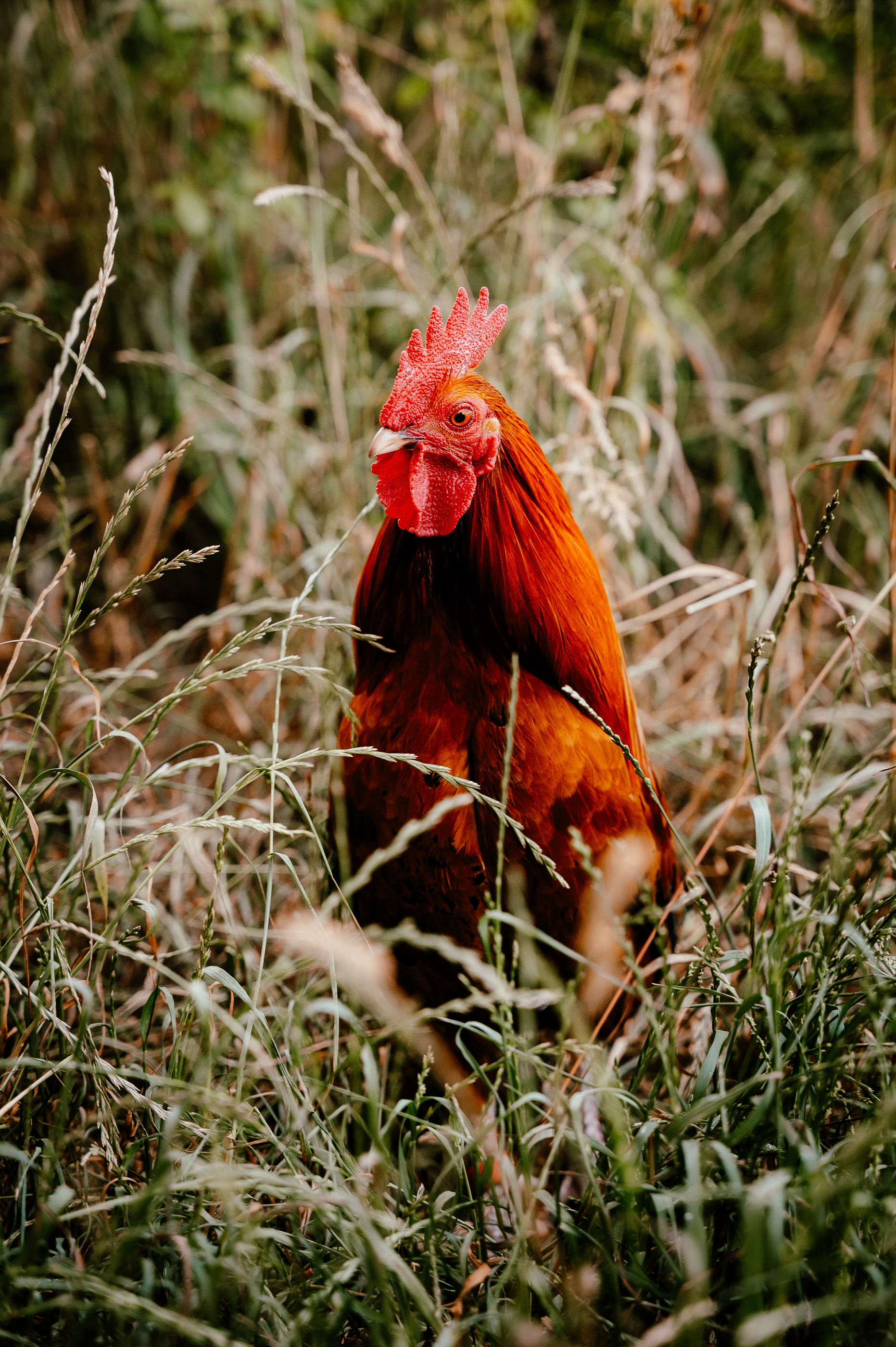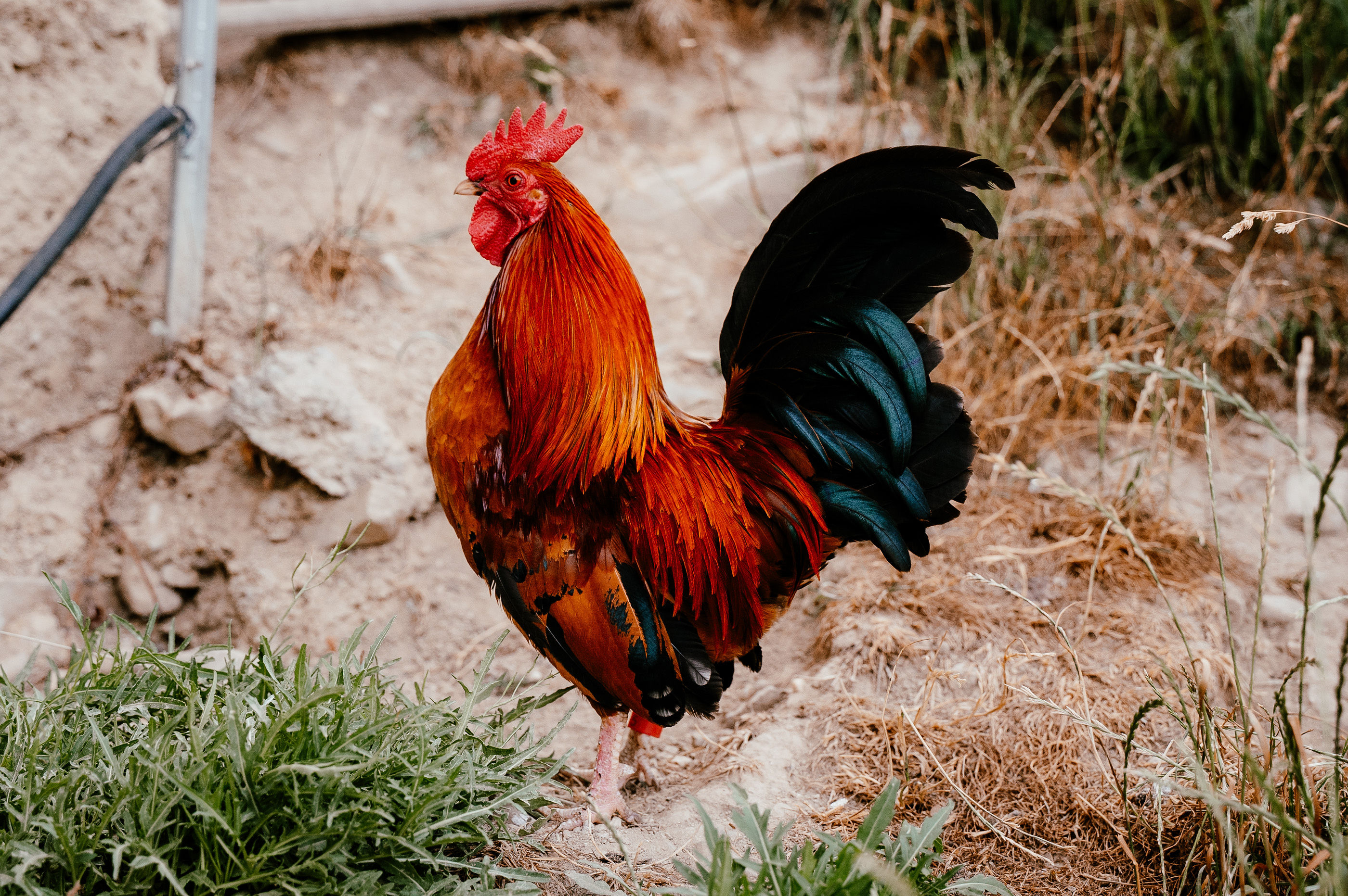 Egon und seine Brüder lebten an einer Waldorfschule in Tübingen. Weil sich die Nachbarn durch die Hähne gestört fühlten, sollten sie getötet werden. Zum Glück gab es liebe Menschen, die das nicht zulassen wollten und nach Lebensplätzen für die Jungs gesucht haben. Bei der Übergabe der Hähne an einer Raststätte bewiesen die drei ihr Ausbruchstalent, sowie außerordentliche Flugkünste. So hatten wir das Vergnügen, eine Stunde lang junge Hähne fangen zu spielen, bis wir sie endlich erwischt hatten und sicher und wohlauf in ihr neues Zuhause bringen konnten. Daher haben wir entschieden, die Hähne Egon, Benny und Kjeld zu nennen. Angelehnt an die Olsen Bande - die liebenswerte Verbrecherbande aus den gleichnamigen dänischen Filmen. Egon ist der zurückhaltendste von den Brüdern. Er ist sehr viel friedliebender als Benny und kämpft nur, wenn er herausgefordert wird. Von sich aus fängt Egon keinen Streit an, er will lieber seine Ruhe haben. Egon ist außerdem der beste Flieger unter den dreien und schafft es aus dem Stand bis zu 3 Meter hoch zu fliegen. Man kann ihn von seinen Brüdern gut durch sein eher einfaches Federkleid unterschieden: Bis auf den Schwanz ist Egon fast durchgehend rotbraun gefiedert.