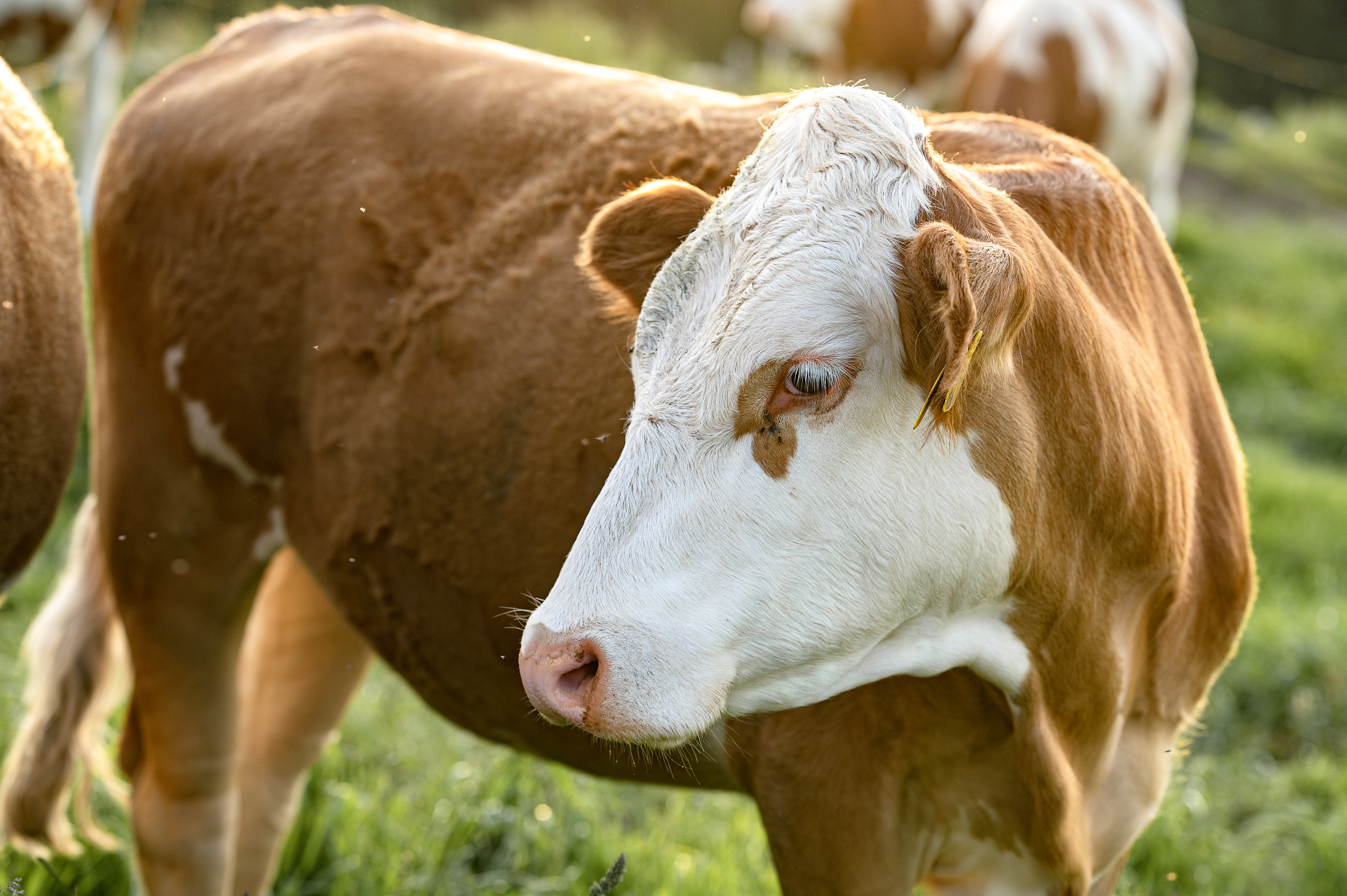 Lotte wurde am 25. Oktober 2021 gemeinsam mit ihrer Zwillingsschwester Luise hier auf dem Hof geboren. Sie ist die Tochter von Flotte. Da der Hof zu der Zeit noch als Milchhof geführt wurde, wurden Luise und ihre Mama Flotte leider schon bald nach der Geburt voneinander getrennt. Lotte ist dann mit einer Gruppe von etwa gleichaltrigen Kälbern aufgewachsen, darunter Luise, Bambina und die etwas ältere Biene. Durch den beengten Platz als Zwilling im Mutterbauch hatte Lotte anfangs ein verdrehtes Beinchen, doch durch viel Bewegung konnte ihr Bein mit der Zeit wieder gerade werden. Inzwischen sieht man von der ursprünglichen Fehlstellung schon gar nichts mehr. Als kleine Kälbchen standen Luise und Lotte in zwei Boxen nebeneinander, getrennt, so wie das üblich ist. Doch eines Tages hörten wir aus dem Stall ein kräftiges Rumpeln und als wir nachsehen gingen, war Lotte zu ihrer Schwester Luise in die Box gehüpft. Nachdem wir Lotte wieder in ihre eigene Box geführt hatten, dauerte es nicht lange und sie stand wieder bei ihrer Schwester. Wir nahmen das als Zeichen und entfernten die Trennwand, sodass die beiden von da an beieinander sein konnten. Seither sind sie unzertrennlich. Lotte ist sehr zutraulich und mag es gerne gestriegelt zu werden. Sie schubbert auch gerne ihren Kopf an Menschen und ist bei diesen Zuneigungsbekundungen nicht immer zimperlich. Genauso wie ihre Schwester ist sie sehr gut darin, ihrem Unmut laut Luft zu machen, wenn mal was nicht passt. Zugleich ist sie aber auch sehr anhänglich und kommt - auch wenn sie mal ausgebüxt ist - immer von selbst wieder zurück.